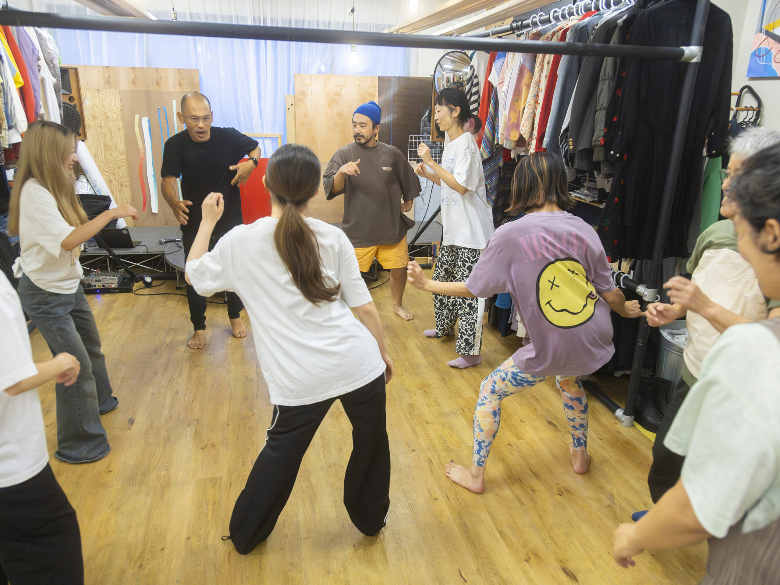 12月に開催するダンスフロアイベント「オーロラフロア」に向けて、アーティストの大黒健嗣が運営するオフィスを会に、約1ヶ月半にわたりワークショップを週一回の頻度で開催した。イメージ共有のためのワークショップとして、衣装づくりやダンスレッスンなどを行い、地域の参加協力者たちのコミュニティ拠点として機能していた。