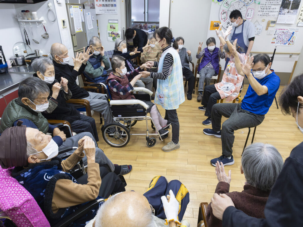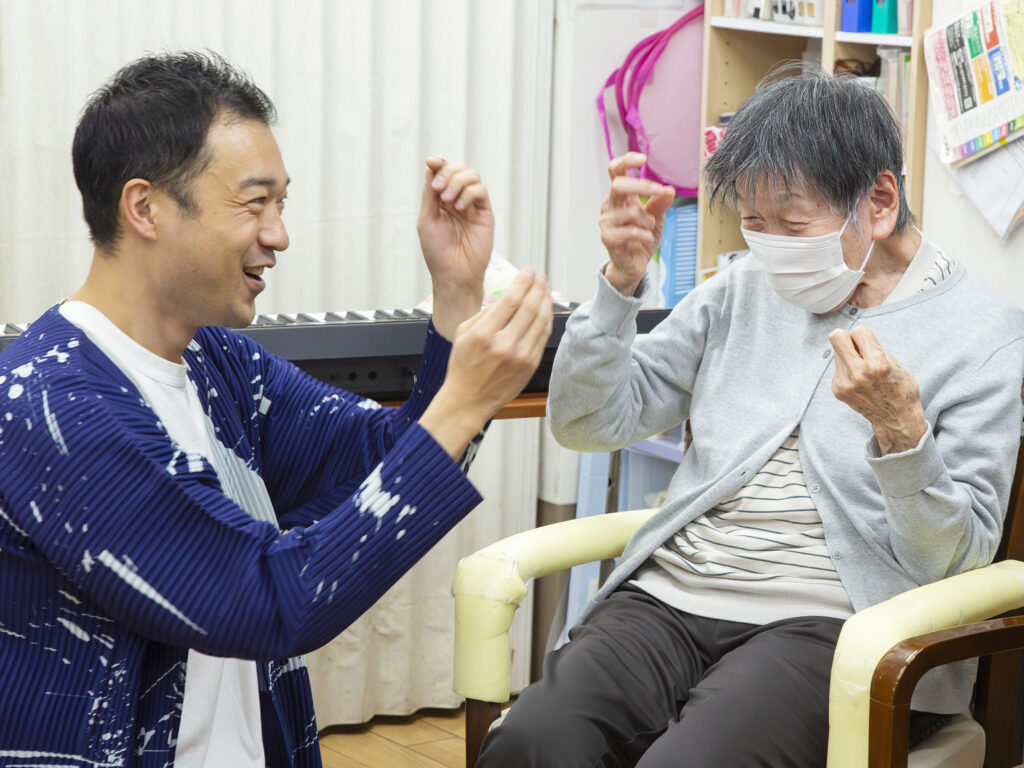 昨年に引き続きアーティストの大西健太郎を迎え交流を通じたアートプログラムの開発をする。身体の動きや表情でコミュニケーションの間合いを味わう「手の会話」を通じて支援する・される関係を超えた関係づくりを試み、東浅草の家に新たな「踊る時間」を共創する。